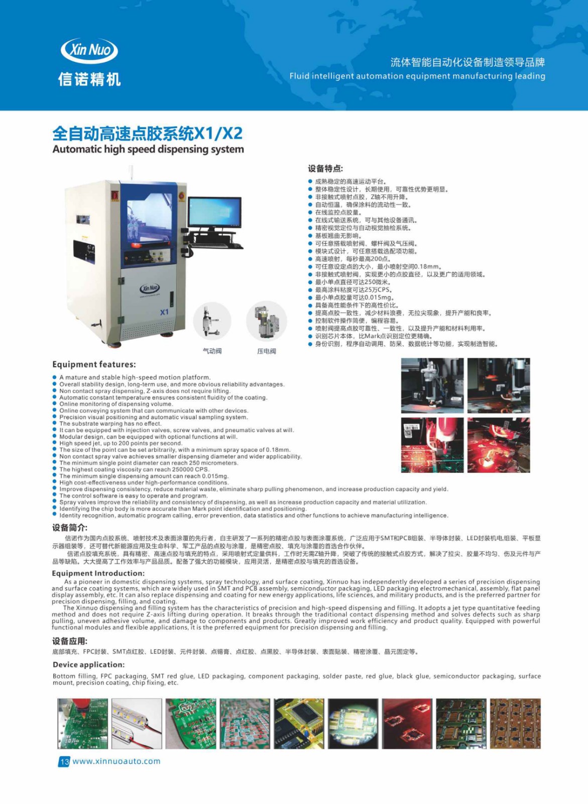 信諾作為國(guó)內(nèi)點(diǎn)膠系統(tǒng)、噴射技術(shù)及表面涂覆的先行者,自主研發(fā)了一系列的精密點(diǎn)膠與表面涂覆系統(tǒng),廣泛應(yīng)用于SMT和PCB組裝、半導(dǎo)體封裝、LED封裝機(jī)電 組裝、平板顯示器組裝等,還可替代新能源應(yīng)用及生命科學(xué)、軍工產(chǎn)品的點(diǎn)膠與涂覆,是精密點(diǎn)膠、填充與涂覆的首選合作伙伴。
